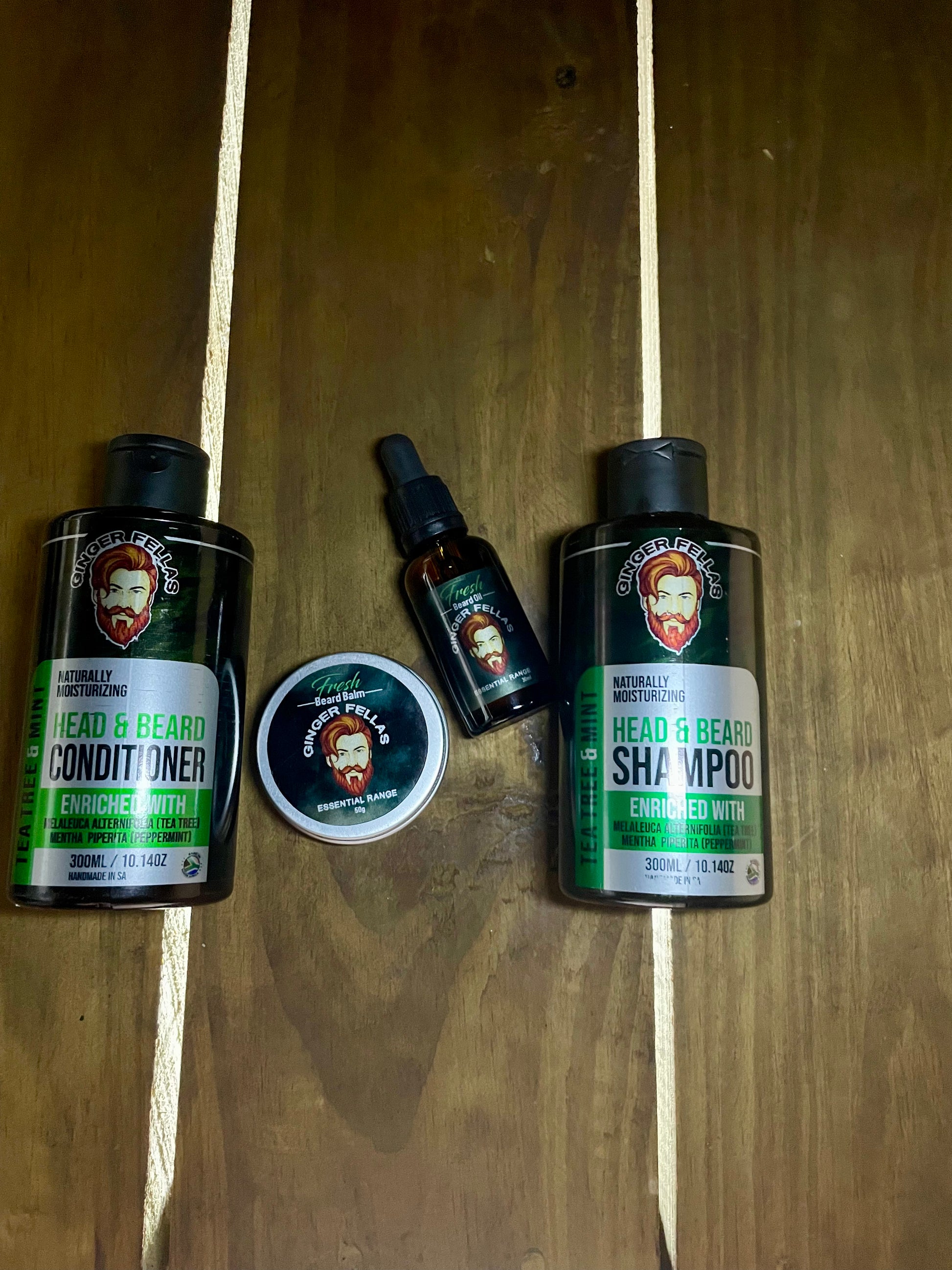 Includes Head&Beard Shampoo, Conditioner, Beard Oil & Balm.